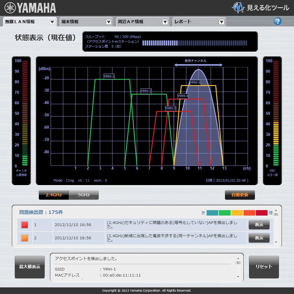 右下図:「WLX302」の無線LANの『見える化ツール』