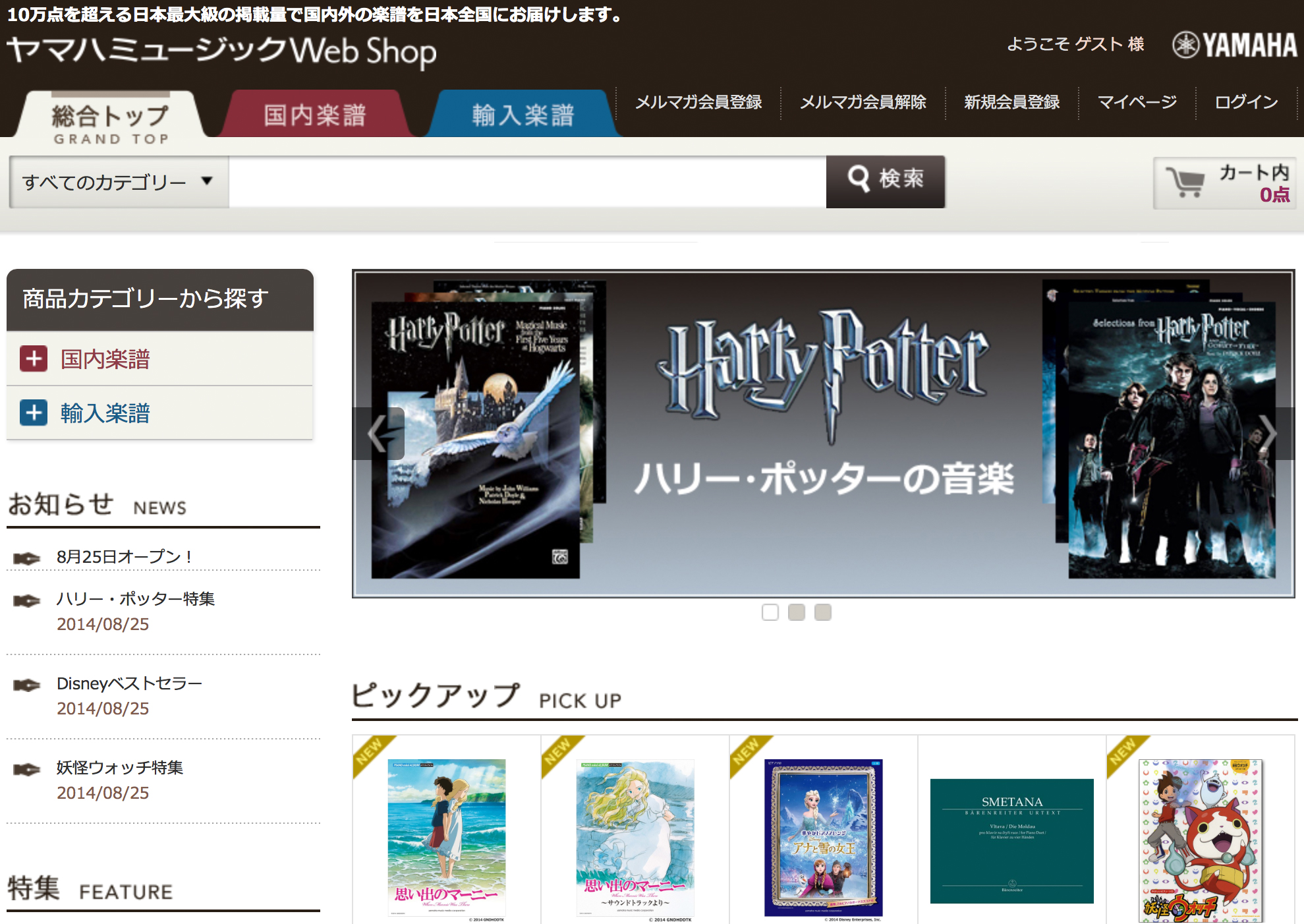 株式会社ヤマハミュージックリテイリング(本社:東京都港区高輪2-17-11 代表取締役社長:葉山和雄)は、国内外の楽譜・音楽書籍を豊富な品揃えで扱うオンラインショップのサイト「ヤマハミュージックWeb Shop」を8月25日(月)に開設します。